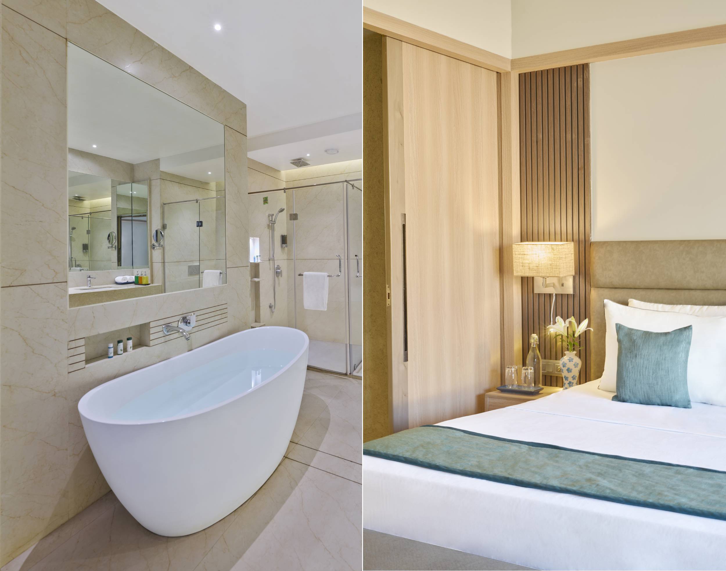 These Royal Suite room with bathtub are decorated in warm, earthy tones and are beautifully furnished. The rooms offer high ceilings, a separate sitting area and lavish interiors.